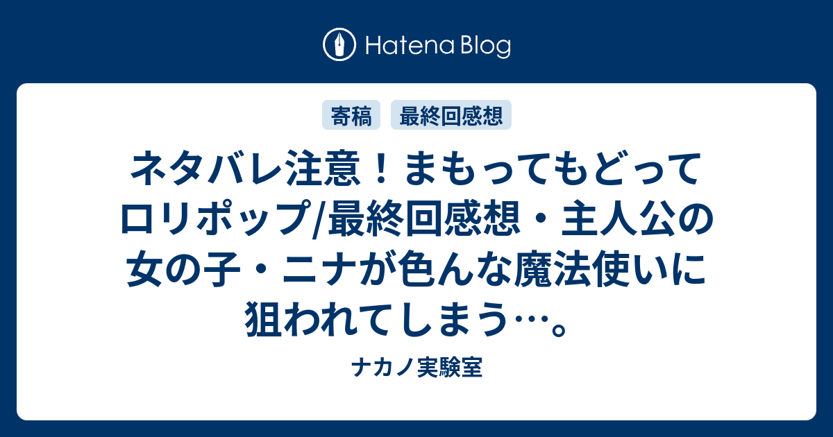 B ネタバレ注意 まもってもどってロリポップ 最終回感想 主人公の女の子 ニナが色んな魔法使いに狙われてしまう ナカノ実験室
