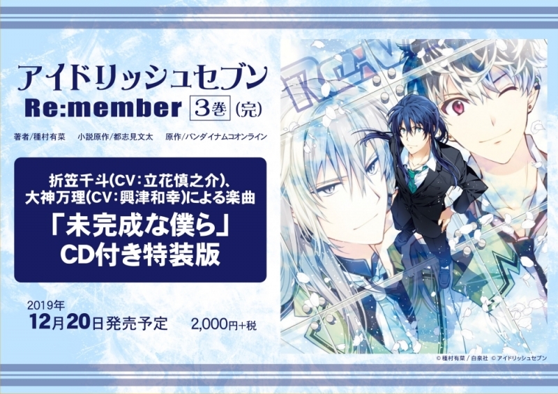 種村有菜 On Twitter アイドリッシュセブンコミカライズ Re Member 原作 バンダイナムコオンライン 小説原作 都志見文太先生 1巻缶バッジつき特装版 通常版 ノベライズ版発売中です 特装版と通常版は裏表紙や折り返しの部分も異なるphotoが使われています