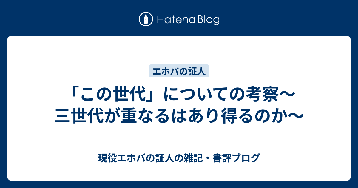 この世代 についての考察 三世代が重なるはあり得るのか 現役エホバの証人の雑記 書評ブログ
