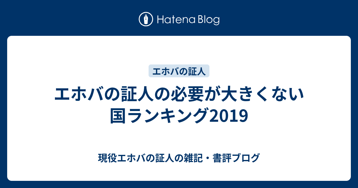 エホバの証人の必要が大きくない国ランキング2019 現役エホバの証人の雑記 書評ブログ
