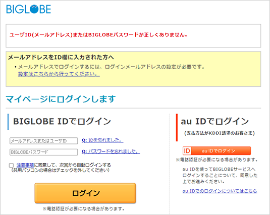ログインできない時に確認すべき点を知りたい よくある質問 Faq Biglobe会員サポート