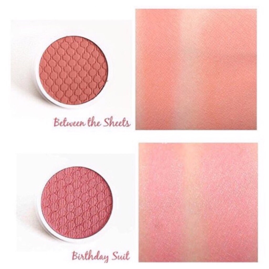 Colourpop Super Shock Cheek Swatch L R Bonus Matte Fox Satin Birthday Suit Satin Between The Sheets Colourpop Eyeshadow Colourpop Makeup Swatches