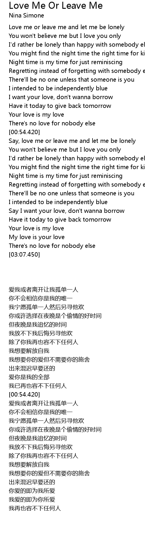 Love Me Or Leave Me Lyrics Follow Lyrics